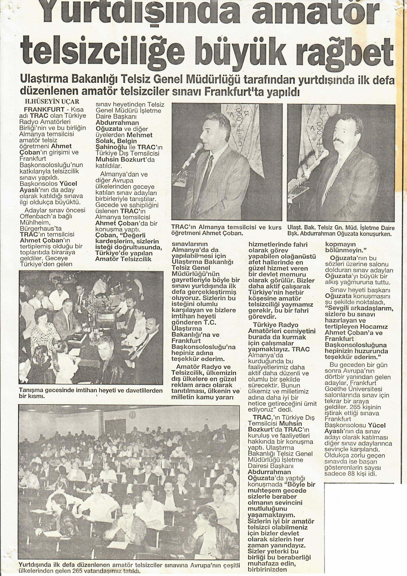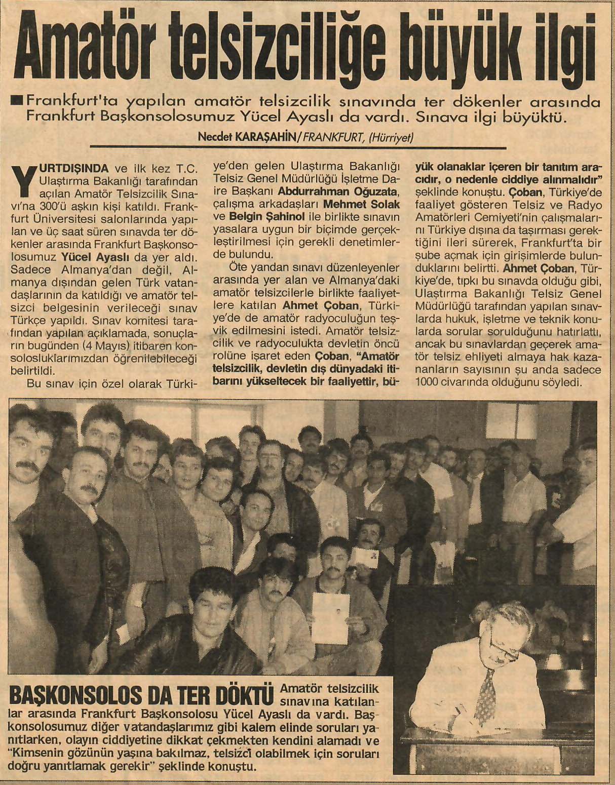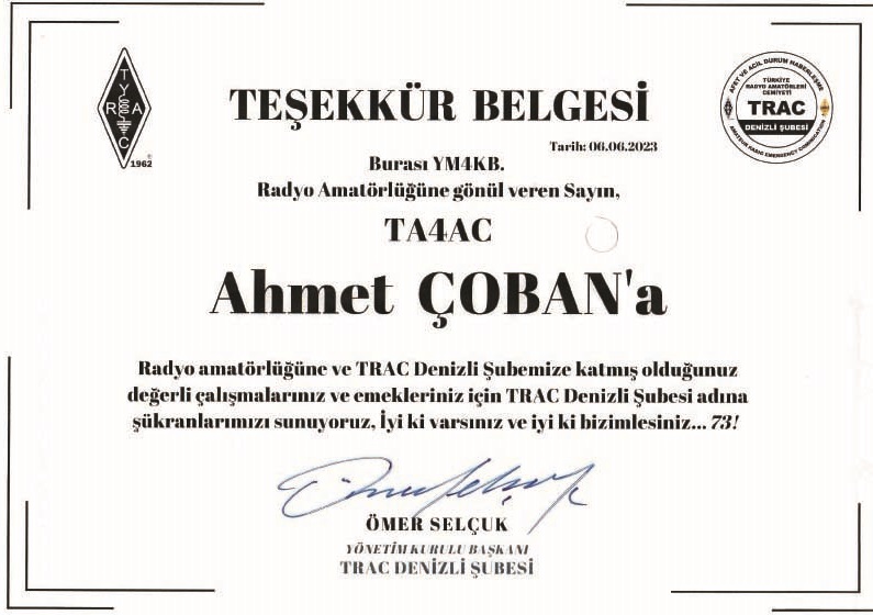 Ahmet Çoban (asil isi disinda) Almanya Amatör Telsizcilik Sinavlari heyetinde 9 yil görev yapmis olub bu süre içersinde Almanya`nin çesitli il`lerinde Kurslar vermis ve Almanya da TRAC-DL´ in Kurucusu`dur.